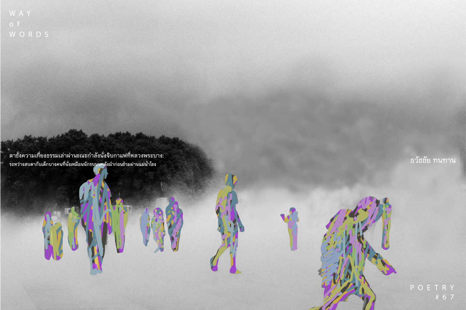 Poetryตาชั่งความเที่ยงธรรมเล่าผ่านขณะกำลังนั่งจิบกาแฟที่หลวงพระบาง: ระหว่างสบตากับเด็กบางคนที่นั่งเหมือนนักรบบนหลังม้าก่อนข้ามผ่านแม่น้ำโขง7 Dec 20197 Dec 2019